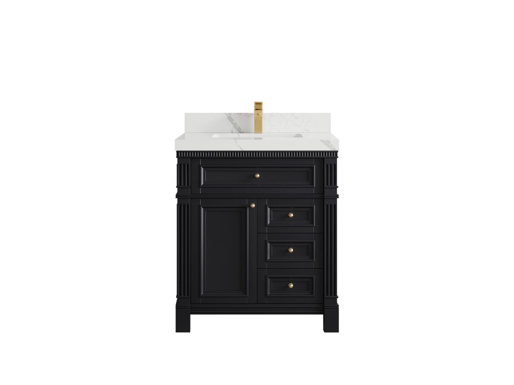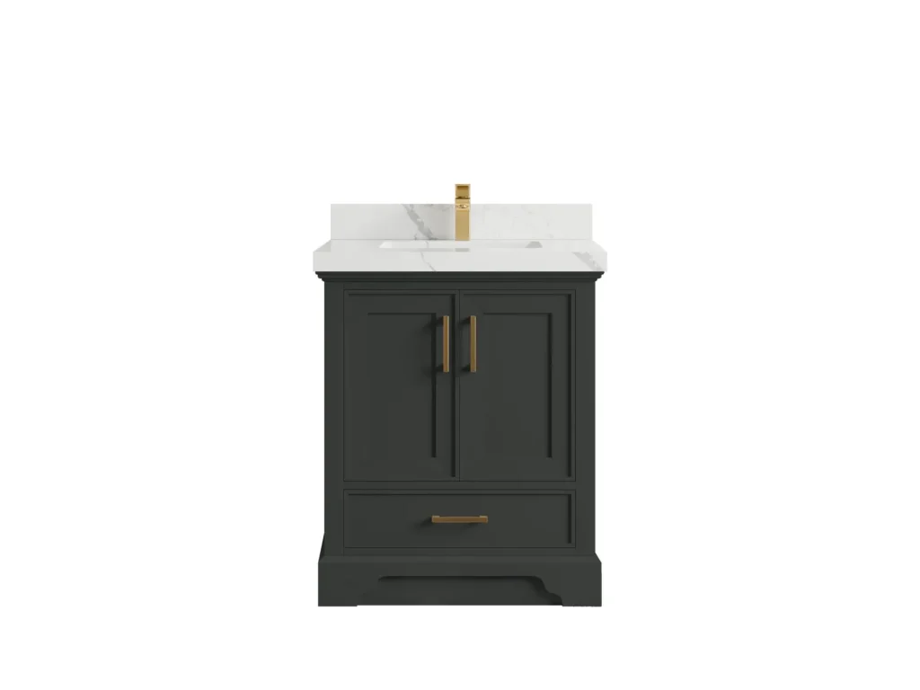 If you’re going for a vanity that feels modern but still warm and timeless, the Charlotte Oak Wood 30-Inch Bathroom Vanity is a solid pick. Made from high-quality oak, it pairs a clean, minimalist design with brushed gold hardware that brings just the right amount of luxury. You also get soft-close drawers and doors, so everything opens and closes smoothly, without slamming. Do you want to personalize your bathroom vanity in Atlanta a bit? You can choose from a variety of countertop materials like quartz or marble to match your style.